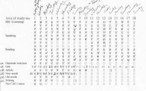 Я разбила двухчасовые сессии чтения, разговорной речи и понимания речи на слух на кусочки по полчаса каждый, и отмечала их в плане по мере выполнения. Таким образом, я могла позаниматься грамматикой, потом с полчаса отдохнуть под радио, затем штурмовать новые слова и т.п. Разговорную речь я практиковала с моей собакой, рассказывая ей о своих планах, чувствах и мыслях. Хитрое животное всегда притворялось, что ничего не понимает, но меня это не останавливало.