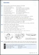 Упражнения на правой половине каждого разворота - это, как правило, задания следующих типов: переписать предложение, написанное обычными словами, с использованием нужного идиоматического выражения, соединить две половинки предложения. Есть и более оригинальные упражнения: объяснить разницу между двумя похоже звучащими идиомами, разгадать кроссворд, угадать идиому по иллюстрации.