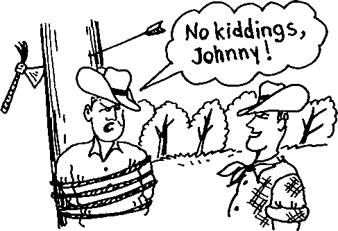 Пример два. Наши ковбои Джон и Билл все еще стоят под горой. Джон чуть не плачет: liCome on, Billy. I said there's no climber over there. I was kidding you (Ну давай же, Билли. Говорю же, нет там никакого