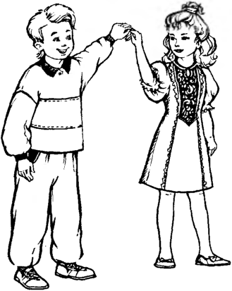 131 ![]() При этом они поют следующее: «London Bridge is falling down, Falling down, falling down, London Bridge is falling down, My fair lady». После этого водящие продолжают песенку: «I caught one, I caught two, I caught many, And I caught you». При слове «you» «мост» падает на того, кто в это время «проходит по нему», т.е. водящие опускают руки, поймав таким образом одного из играющих. Пойманному ученику предлагается выбрать один из двух предметов: ![]() Do you want a pie or a cake? Do you choose a pie or a cake? Ученик отвечает на вопрос и становится за спиной того водящего, которого он выбрал. Игра продолжается. Memory Run Участвующие в игре могут сидеть или стоять. Учитель (или ведущий) вызывает их по очереди. Первый ученик подбегает к какому-либо предмету, находящемуся в комнате, дотрагивается до него и называет его по-английски. После этого он возвращается бегом на свое место. Второй ученик подбегает к этому же предмету, дотрагивается до него, повторяет его название по-английски, потом дотрагивается до какого-либо другого предмета, называет его по-английски и возвращается на свое место. Третий ученик называет те же предметы, что и его товарищи, и добавляет название третьего предмета и т.д. Предметы нужно называть в том порядке, в котором это делали предыдущие ученики. Игра должна проводиться в быстром темпе. Midnight Для игры выбирается водящий. В одном углу зала мелом помечено место водящего — его «дом», в противоположном углу — место играющих, это — их «дом». Дети покидают свой «дом» и приближаются к «дому» водящего. Они спрашивают его: «What time is it?» Водящий называет любое время: «It is ten o’clock», «It is half past three» и т.п. Дети находятся в безопасности, если названо любое время, кроме полуночи. Но когда водящий говорит: «It is midnight», дети должны бежать «домой», а водящий гонится за ними, стараясь поймать как можно больше ребят. Те ученики, которых он поймал, идут в «дом» водящего и помогают ему ловить остальных играющих. Тот ученик, которого