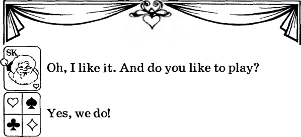 (строго). Они вообще больше ничего не умеют делать, только играть! Не королевство, а сумасшедший дом! (Нравоучительно.) А государственные дела требуют порядка и рассудительности! Главный закон нашего государства гласит, что... ![]() (грозно). Are you speaking again? No, no, I keep silence (закрывает рот руками и отворачивается). ![]() - ' T <a ![]() All right. My dear friends, let’s play some games. 1. Дорисовать на доске рисунки и назвать нарисованные предметы на английском языке. 2. Игра «What’s missing?» (Дети определяют и называют исчезнувшие предметы). 3. Игра «Кто быстрей?» (Играют пятеро детей. Под музыку (звучит песня на английском языке) дети ходят по классу, в центре которого стоят 4 стула. Как только музыка прерывается, дети должны занять места на стульях. Проигрывает тот, кому не хватило места. Занимая место на стуле, каждый должен сказать: «I am here!»). 4. Кто быстрее нарисует на воздушном шарике лицо Снегурочки, приклеит волосы, наденет корону? 18 ![]() |