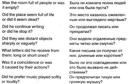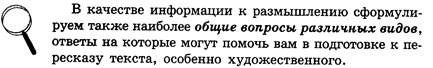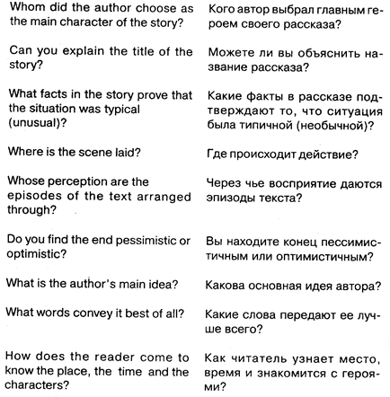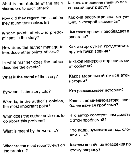 Приведенные примеры вопросов лишь показывают разнообразие вариантов и помогают дать толчок фантазии. Что касается конкретных вопросов, то предложенный на экзамене текст подскажет их сам.