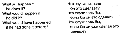 В предложенной ситуации по теме или в дискуссии могут возникать или подразумеваться вопросы о том, что могло бы произойти при известных обстоятельствах, требующие ответа с учетом трех показанных вариантов условия.