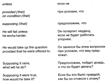 Кроме союза if, в условных предложениях возможны еще и следующие союзы: