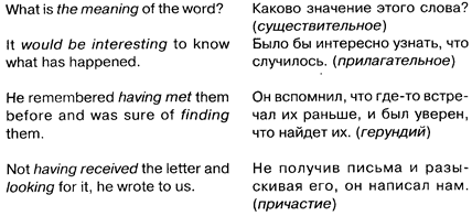 Существительное и прилагательное определить проще. Они отдельной статьей даны в словаре. Перед существительным в тексте в большинстве случаев окажется артикль. Прилагательное обычно, как и в русском, определяет признаки существительного или местоимения. Причастие и герундий образуются от глагола, и различить их поможет вопрос. К английскому причастию подойдет вопрос: «что делающий?», «что делавший?», «что делая?», «что сделав?» (читавший (книги), плывущий и т. д.). Герундий поддается вопросу «что делание?» (чтение (книги), плавание).