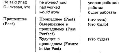 Итак, суть этого закона в том, что если главное предложение оказывается в прошедшем времени, то оно как бы тянет за собой в прошедшие формы и связанные с ним придаточные. При этом русский перевод этих придаточных не меняется, поскольку в русском языке такого закона нет.