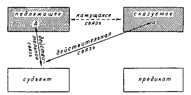 В данной схеме признак числа и лица в подлежащем условно обозначен через А, а признак лица и числа в сказуемом — через а. Если бы здесь было непосредственное согласование сказуемого с подлежащим по форме, то в сказуемом должны