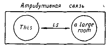 В предложении This room is large признак мысленно отделяется от предмета, и его обозначение вводится как своего рода открытие, заканчивает мысль. Признак в данном случае приписывается предмету, связывается с выражением предикативности. В предложении This is a large room — large room выделяется как нечто цельное. Нельзя сказать This is a large. Связь предиката и предмета дается как нечто готовое, а не как открываемое в высказывании. Признак не отделяется от предмета, но вводится одновременно с ним. Различное осмысление связи между признаком и предметом в том и другом предложении можно пояснить с помощью следующих двух схем.