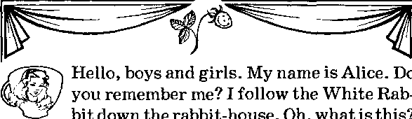 bit down the rabbit-house. Oh, what is this? I can see a house! It is the March Hare’s house. Because the chimneys look like ears, and the roof made from fur. Look through the window, please. I can see the March Hare and the Hatter. They are having tea at the table. A Dormouse is sitting between them. He is sleeping. So, I’m coming.